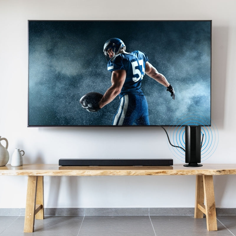 Migliora la tua esperienza di intrattenimento domestico con canali ad alta definizione forniti in una chiarezza straordinaria per tutta la famiglia. Grazie alla tecnologia all'avanguardia per il potenziamento del segnale e all'eccezionale ricezione UHF/VHF, puoi accedere a un'incredibile gamma fino a 360 miglia.