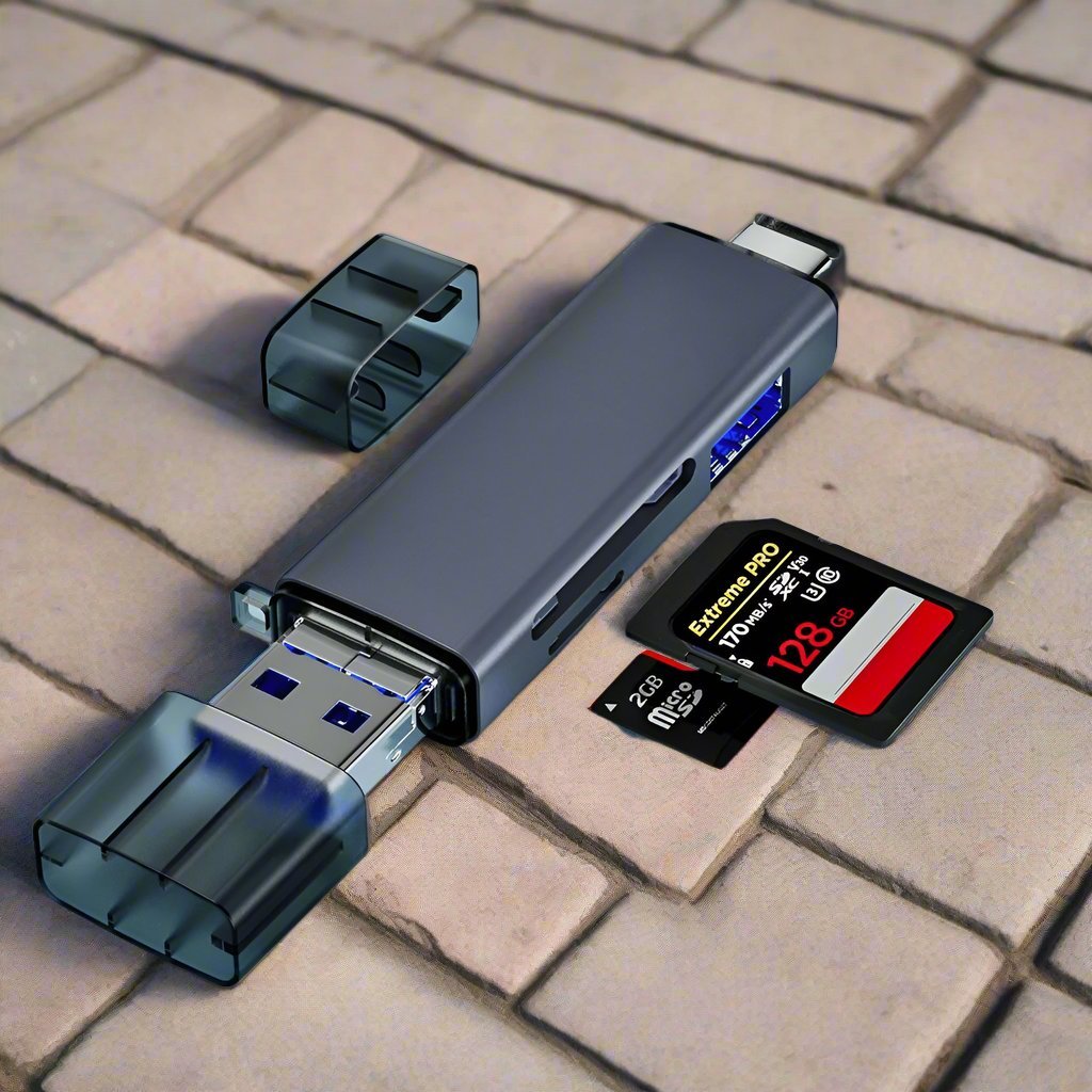 Presentiamo il Lettore di schede e adattatore USB 3.0 tutto in uno per telefoni, la tua soluzione definitiva per connettività e ricarica senza interruzioni. Questo dispositivo versatile combina sei funzioni essenziali in un unico gadget compatto, eliminando la necessità di più adattatori. Perfetto per chi ha una vita frenetica, garantisce una consegna di energia rapida ed efficiente mantenendo i tuoi dispositivi connessi e carichi in movimento. Vivi semplicità e funzionalità come mai prima d'ora con questo accessorio tecnologico indispensabile!