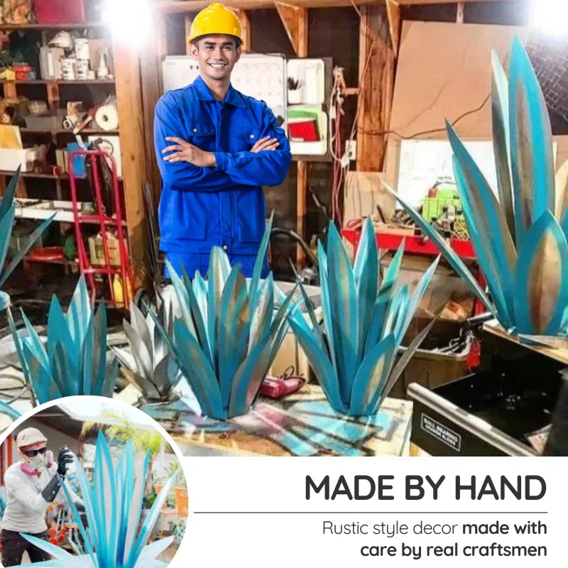 Progettata meticolosamente, questa agave in metallo fonde senza sforzo eleganza e un aspetto sorprendente, mostrando colori vivaci su uno sfondo in acciaio invecchiato.