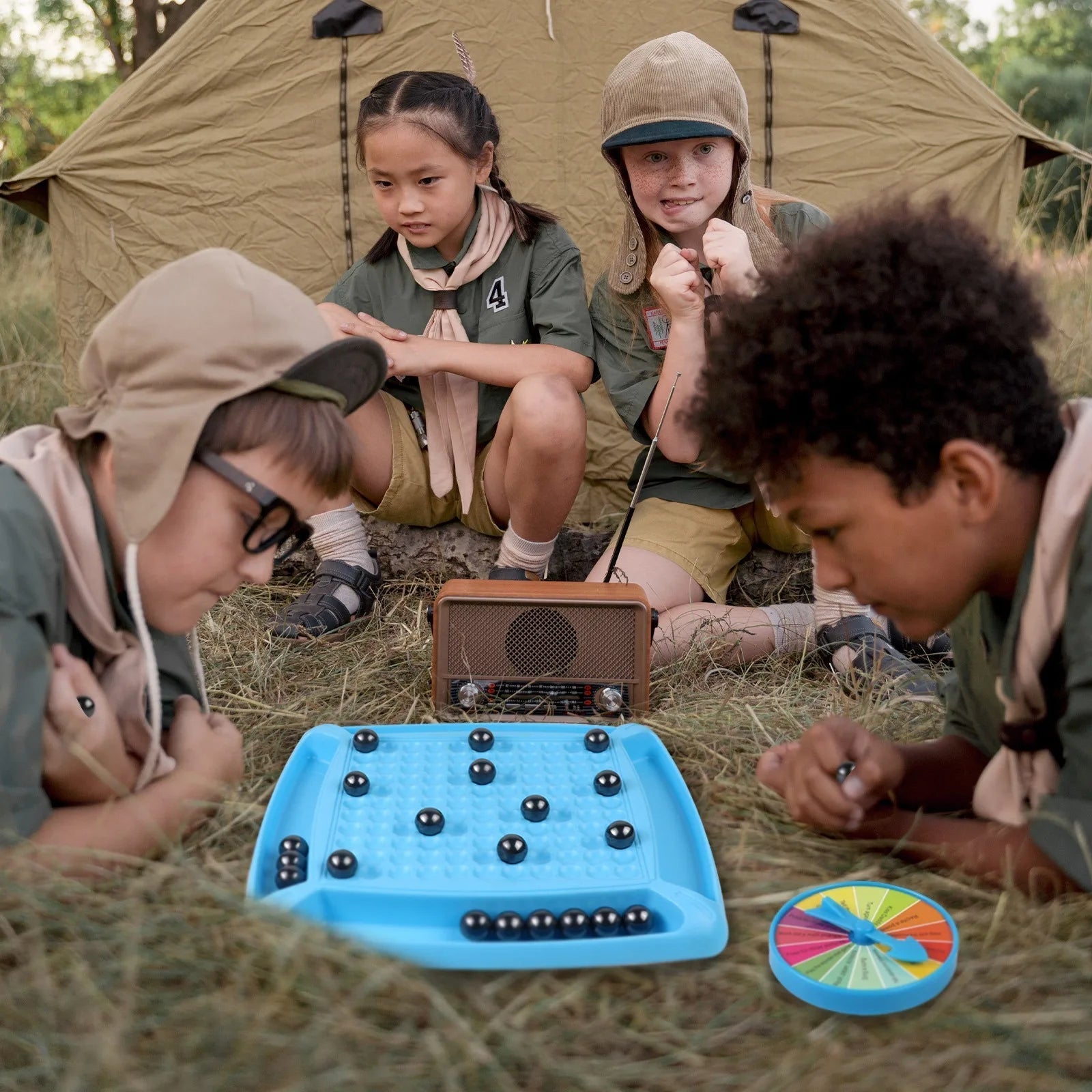 Eleva l'emozione dei tuoi incontri di scacchi con un avvincente componente di roulette penalty. I giocatori usano una corda gialla per definire la loro area di gioco, dove ogni mossa presenta il rischio di attirare pezzi extra. Il giocatore con il minor numero di pezzi rimasti alla fine della partita affronta una sfida unica, aggiungendo un ulteriore livello di profondità strategica e divertimento! Perfetto per riunioni familiari o competizioni amichevoli!