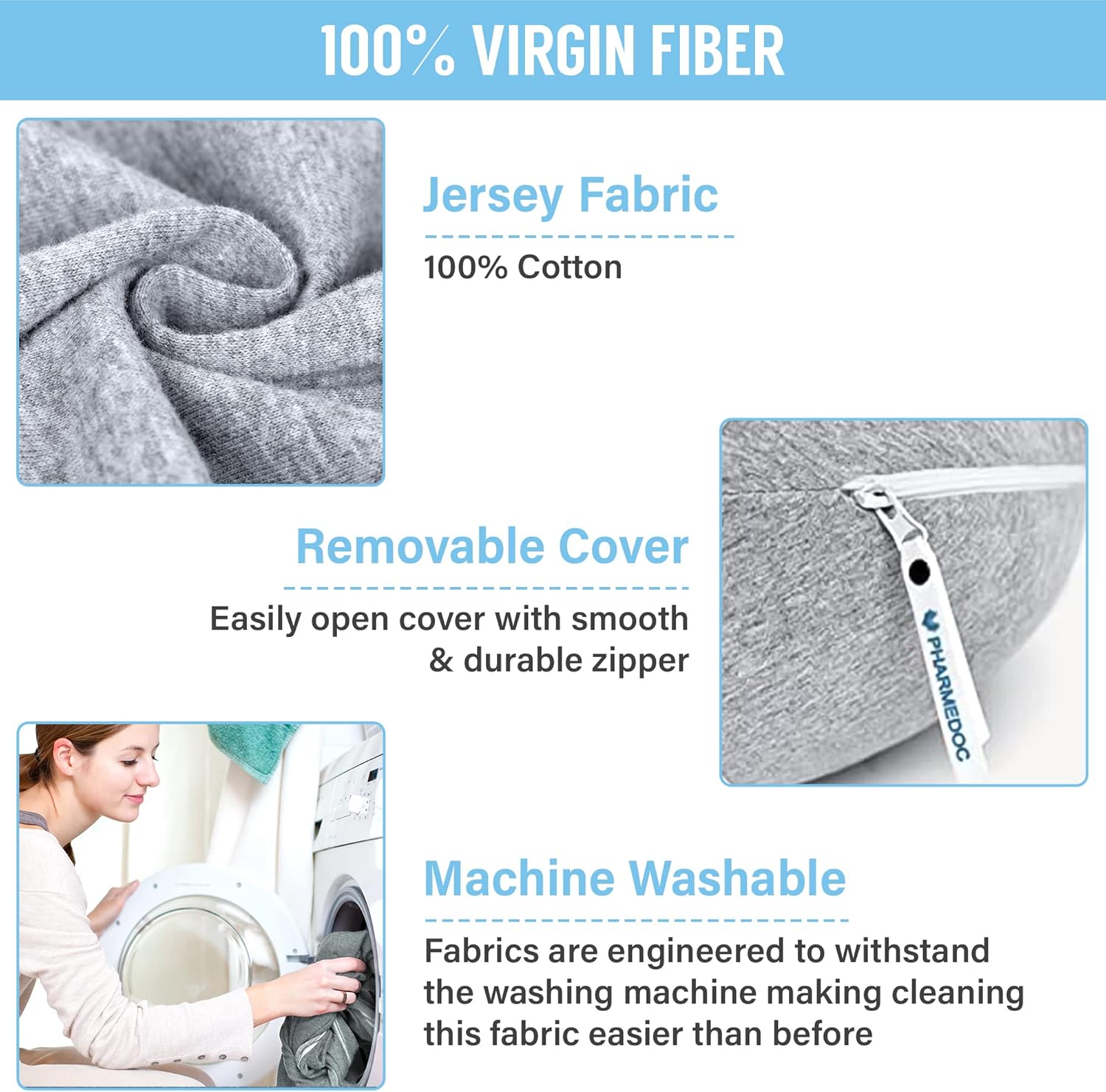 Ma non è tutto! Questo incredibile cuscino vanta una fodera rimovibile realizzata in morbido cotone jersey di lusso, lavabile in lavatrice per la tua comodità. Dotato di cerniere di alta qualità e cuciture robuste a doppio filo, è costruito per durare. Il tessuto mantiene la sua morbidezza anche dopo molti lavaggi, assicurando un allineamento ottimale della colonna vertebrale per il tuo comfort.