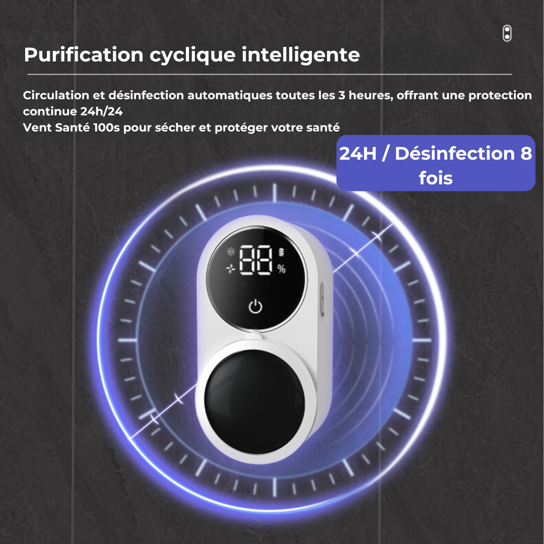 Alimentato da una potente batteria al litio da 1800 mAh, questo sanificatore è facilmente ricaricabile tramite USB, offrendo un'eccezionale comodità sia a casa che in viaggio, così puoi dire addio alla necessità di una presa elettrica.