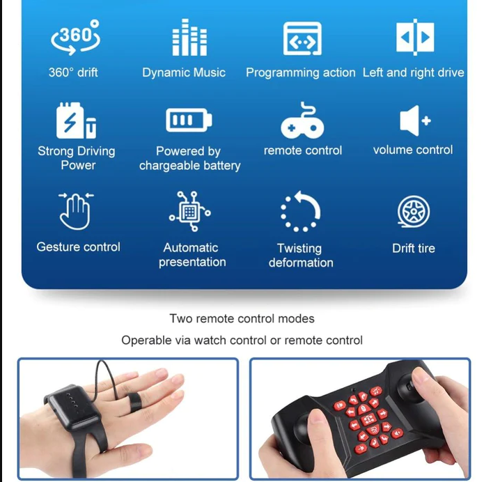 Questo incredibile giocattolo non è solo altamente reattivo ma anche straordinariamente facile da usare. Indossando semplicemente l’orologio di controllo gestuale, il tuo bambino può guidare l’auto senza sforzo usando i movimenti della mano. Il veicolo adattabile è progettato con maestria per rilevare i cambiamenti di gesto e reagire di conseguenza.
