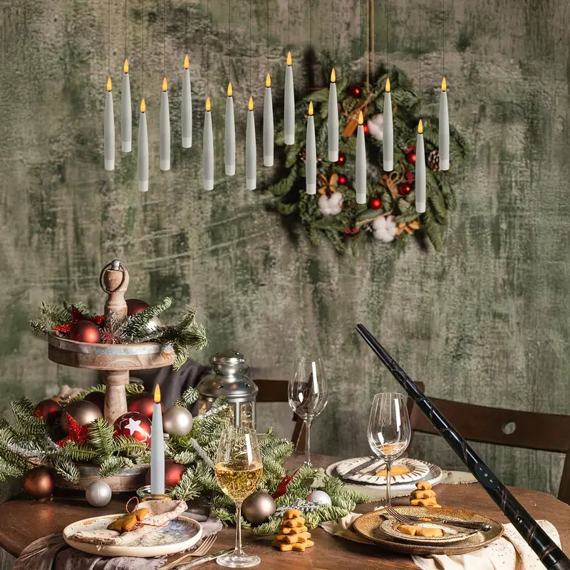Sospendi facilmente queste candele LED wireless usando i ganci adesivi e il filo invisibile inclusi. Una volta appese elegantemente, creano la magica illusione di fluttuare delicatamente nell'aria, offrendo uno spettacolo visivo straordinario. Perfette per ogni evento—che sia un matrimonio, una festa di Halloween o una serata accogliente in casa—queste candele creano un'atmosfera incantevole e indimenticabile.