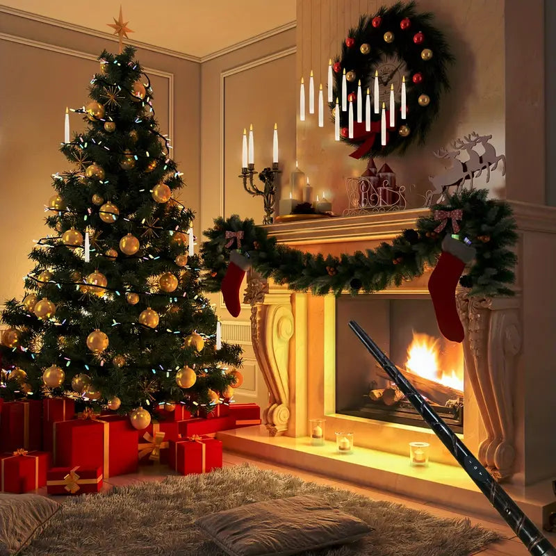 - Contenuto della Confezione: 12 candele LED, bacchetta luminosa con telecomando (33,2 cm), ganci adesivi, puntine da disegno, filo invisibile preinstallato
