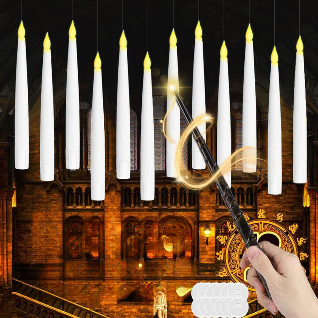 Trasforma il tuo spazio con il nostro Set di Candele Galleggianti Incantate con 12 luci magiche che creano un'atmosfera indimenticabile. Queste innovative candele LED wireless fluttuano senza sforzo, offrendo un'illusione visiva mozzafiato per ogni occasione. Con la bacchetta luminosa inclusa, puoi facilmente regolare luminosità e modalità di illuminazione, garantendo l'atmosfera perfetta. Goditi fino a 200 ore di illuminazione sicura e senza fumo, rendendo queste candele la scelta ideale per famiglie e riunioni.