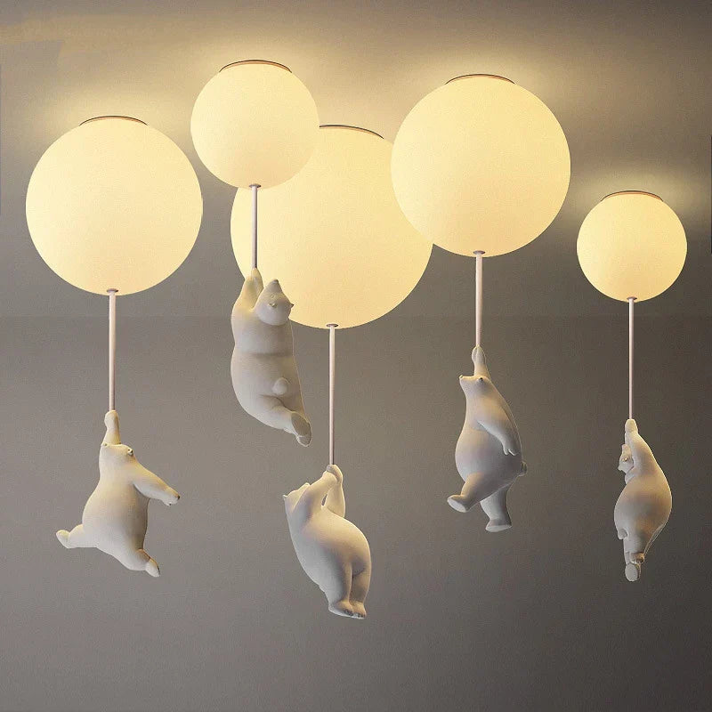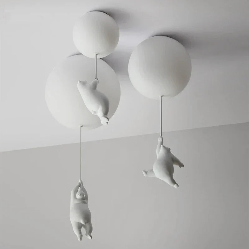 Questo delizioso lampadario fa più che illuminare; vegli sui sogni dei tuoi bambini. Con il suo affascinante design a orso polare sospeso, introduce una presenza dolce che crea un ambiente calmante in tutta la stanza.