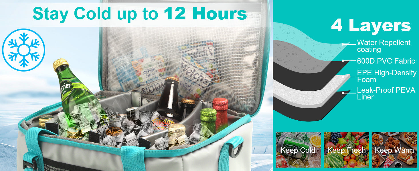 ISOLAMENTO A LUNGA DURATA: Realizzata con materiali isolanti ad alta densità, questa borsa mantiene freschi cibo e bevande fino a 12 ore – perfetta per viaggi prolungati.