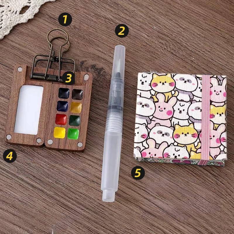 Questo set completo include un pennello per acquerelli e un libro premium per acquerelli, di dimensioni 2.36' x 2.36'. La carta di alta qualità da 300g è perfetta per rendere dettagli intricati e sperimentare con vari lavaggi. Insieme alla tavolozza, fornisce un kit completo che ti permette di creare opere d'arte ovunque l'ispirazione colpisca.