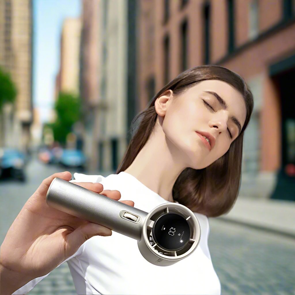 Utilizzando una tecnologia avanzata di struttura a turbina, il Ventilatore Portatile a Mano comprime e raffredda efficacemente l'aria calda, offrendo una brezza rivitalizzante che combatte rapidamente il caldo. In pochi istanti, noterai un drastico calo della temperatura, rendendo più semplice sopportare anche il caldo più intenso. Realizzato con una finitura metallica elegante, questo ventilatore unisce stile e funzionalità, garantendo non solo un aspetto fantastico ma anche prestazioni eccezionali.