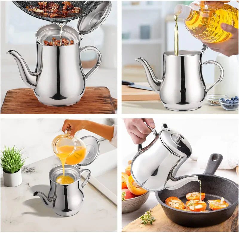 Scopri la soluzione definitiva per la tua cucina con il nostro Barattolo Premium per Conservazione Olio con Filtro per Freschezza. Realizzato in acciaio inossidabile di qualità premium, questo elegante barattolo non solo migliora l'estetica della tua cucina, ma garantisce anche che i tuoi oli rimangano privi di impurità. Con un filtro a maglia fine rimovibile, assicura olio pulito e riutilizzabile, rendendolo essenziale sia per gli appassionati di cucina che per i cuochi professionisti. Eleva oggi la tua esperienza culinaria!
