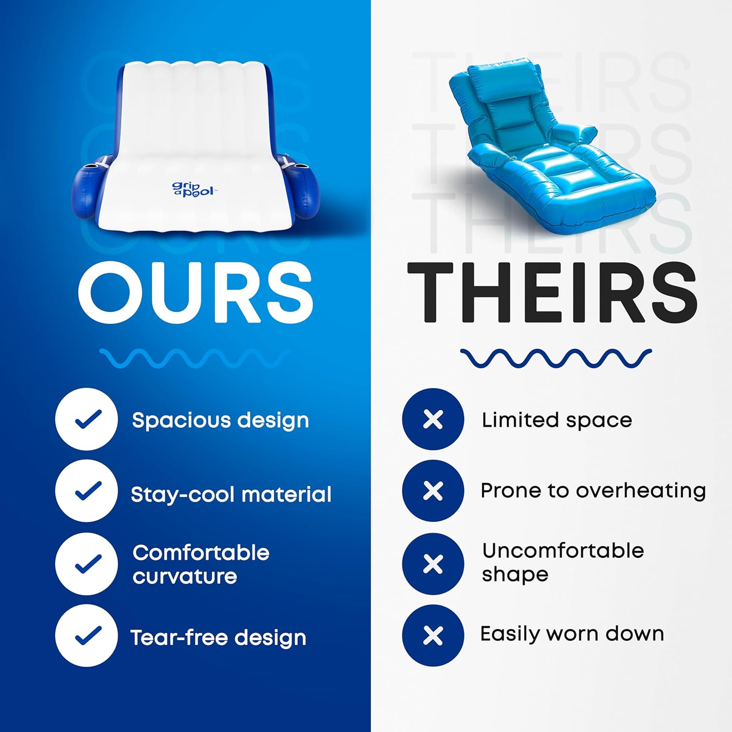 Progettata per adattarsi comodamente a due adulti di corporatura più grande, la nostra sedia galleggiante deluxe per piscina offre un relax senza pari, rendendola un compagno essenziale per una giornata di sole vicino all'acqua.