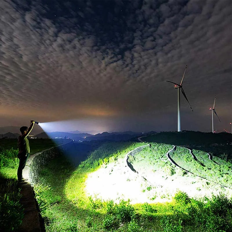 La torcia USB ultra potente è essenziale per gli amanti dell'outdoor, ideale per campeggio, escursionismo, pesca e caccia.